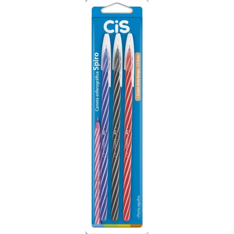 Caneta Esferografica CIS Spiro 0,7MM AZ/PT/VM C/3