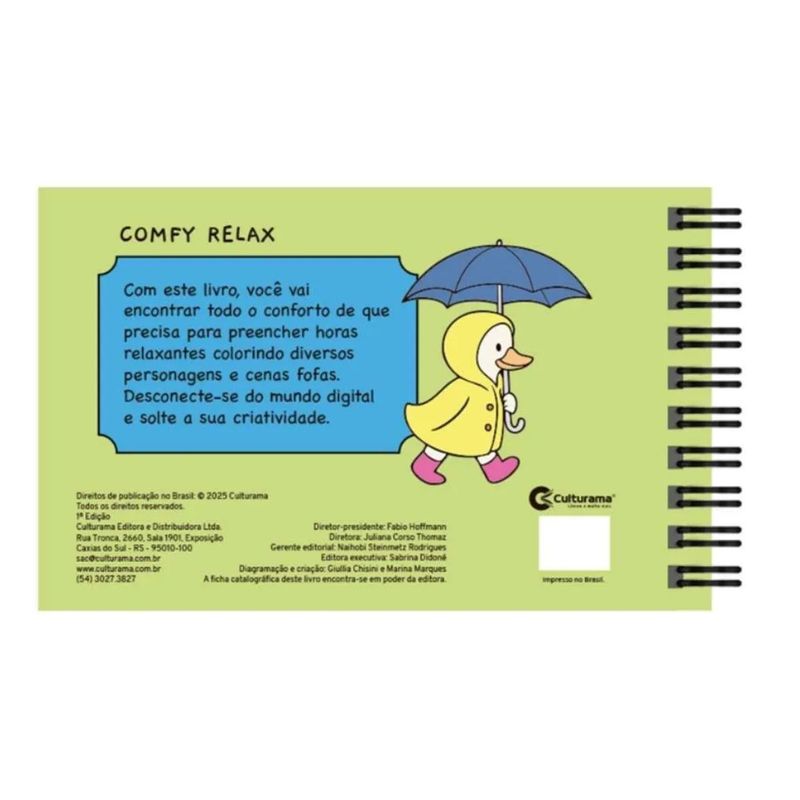 Sakura ShopO Livro de Colorir Comfy Relax Capa Dura é a escolha ideal para estimular a criatividade das crianças de forma divertida e educativa. Com ilustrações fofas e páginas em papel de qualidade, ele convida os pequenos a soltarem a imaginação com lápis de cor, giz ou canetinhas. A capa dura garante mais durabilidade, tornando o livro perfeito para levar na mochila ou guardar na estante. Além de entreter, ajuda no desenvolvimento da coordenação motora e da concentração. Diversão garantida com um toque de carinho e capivaras!