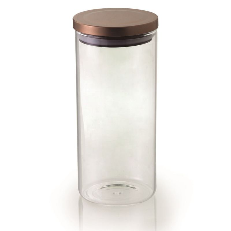 Utensilios do ChefLindo Pote em boroslicato (vidro mais resistente) com tampa na cor bronze cobre