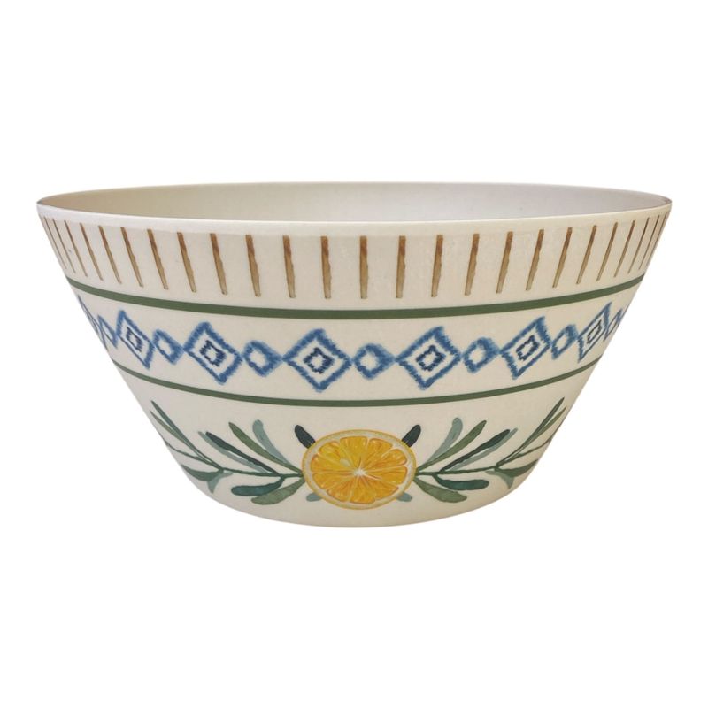 Moderna saladeira em fibra de bambu com desenho limão siciliano e pegador em inox