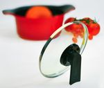 Utensilios do ChefAs tampas de vidro Roichen tornam cozinhar mais prático: seu pegador Stand Up permite que sejam posicionadas em posição vertical quando removidas das panelas.